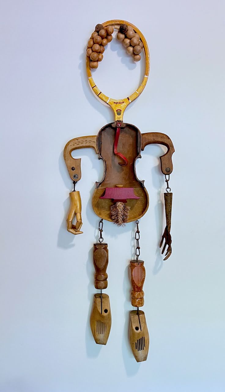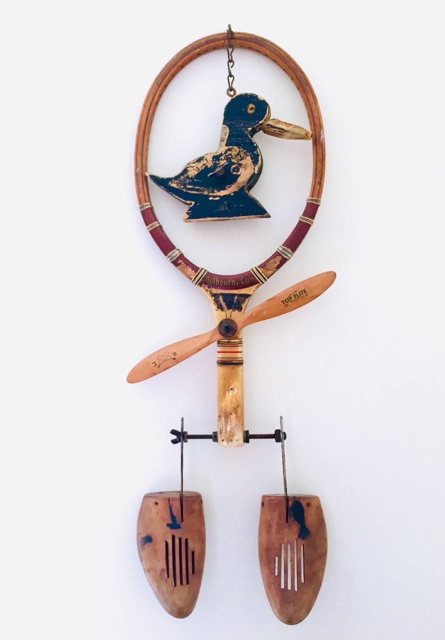 I enjoy the process of discovery and finding ways to transform a “known” object, such as an old tennis racket, into something unknown. I put pieces and parts together creating a new whole. Sometimes my intent in humor, providing some lightness despite the overwhelming seriousness in life. Sometimes my intent is to provoke thought or emotion. Always I hope to surprise and present the world in a new, imaginative way.