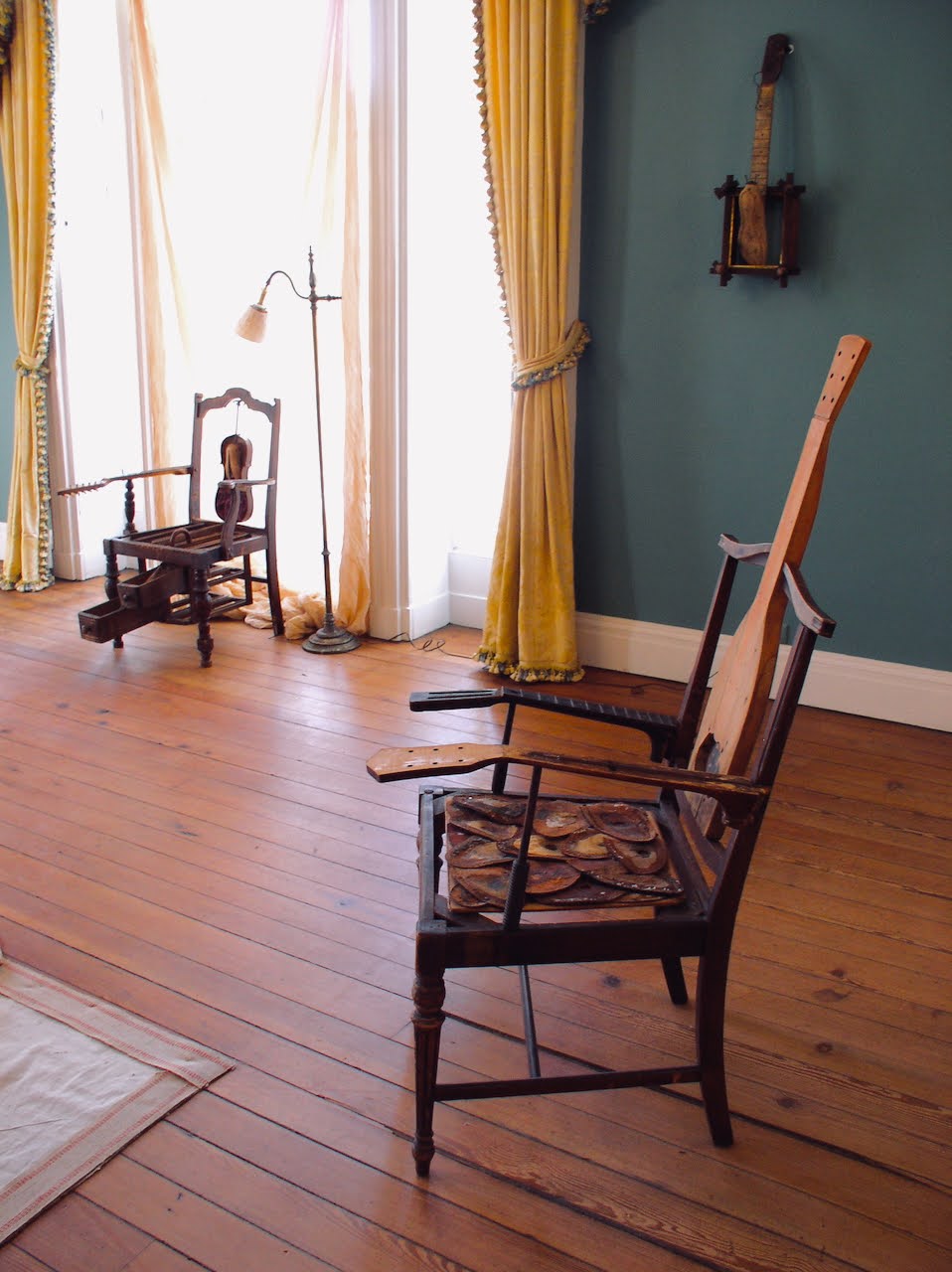 Commissioned in 2007 for the Columbia, SC Festival of Arts and funded in part by Historic Columbia Foundation, Musical Soles was a response to the formal, symmetrical architectural features and prior uses of the Robert Mills House (circa 1823). Although designed as a private residence it instead housed three religious institutions. Each single sole listens within and creates its own sound. The sound that makes it come alive…